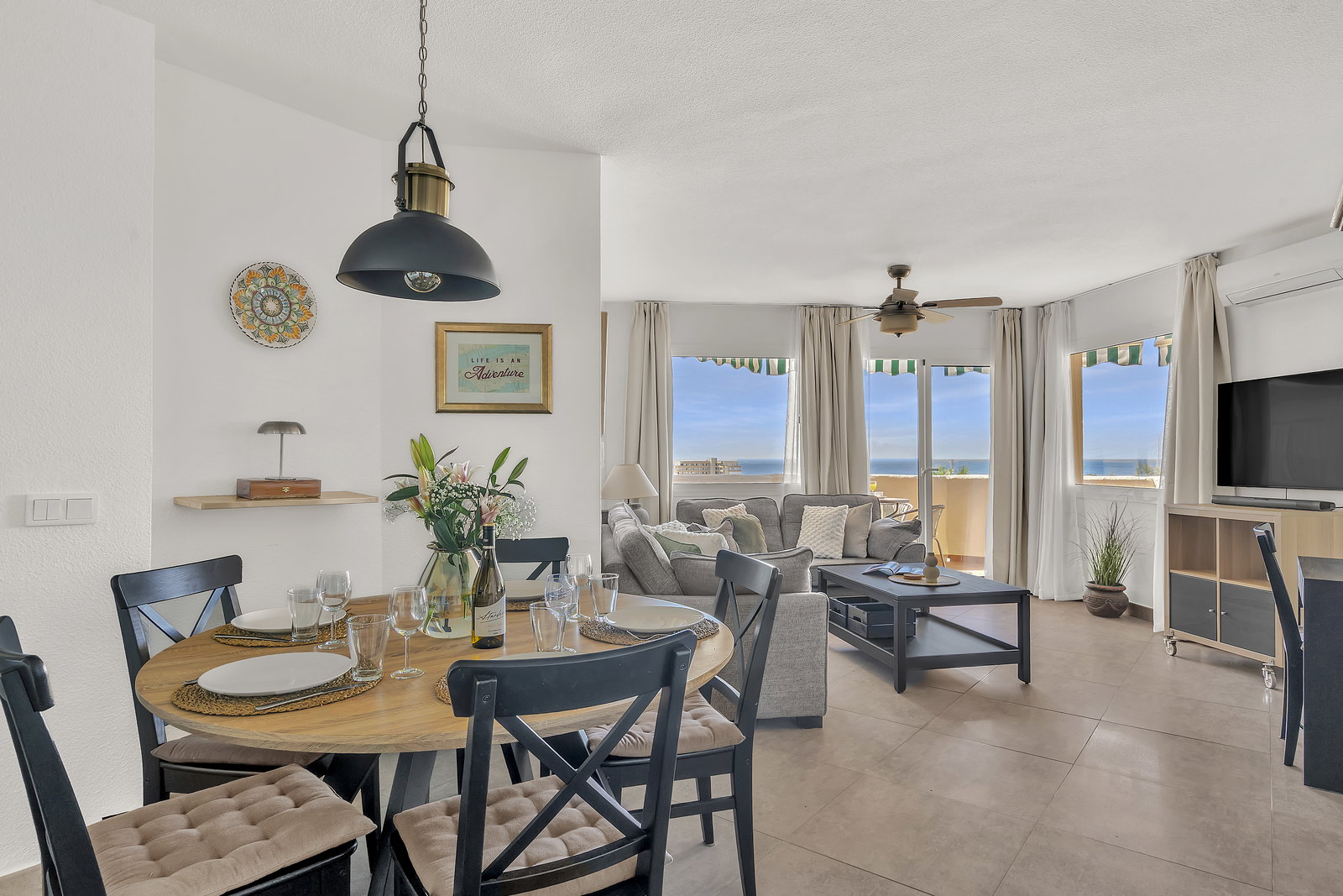 Panoramisch zeezicht, zwembad en supersnelle glasvezel WiFi in het hart van Riviera del Sol.