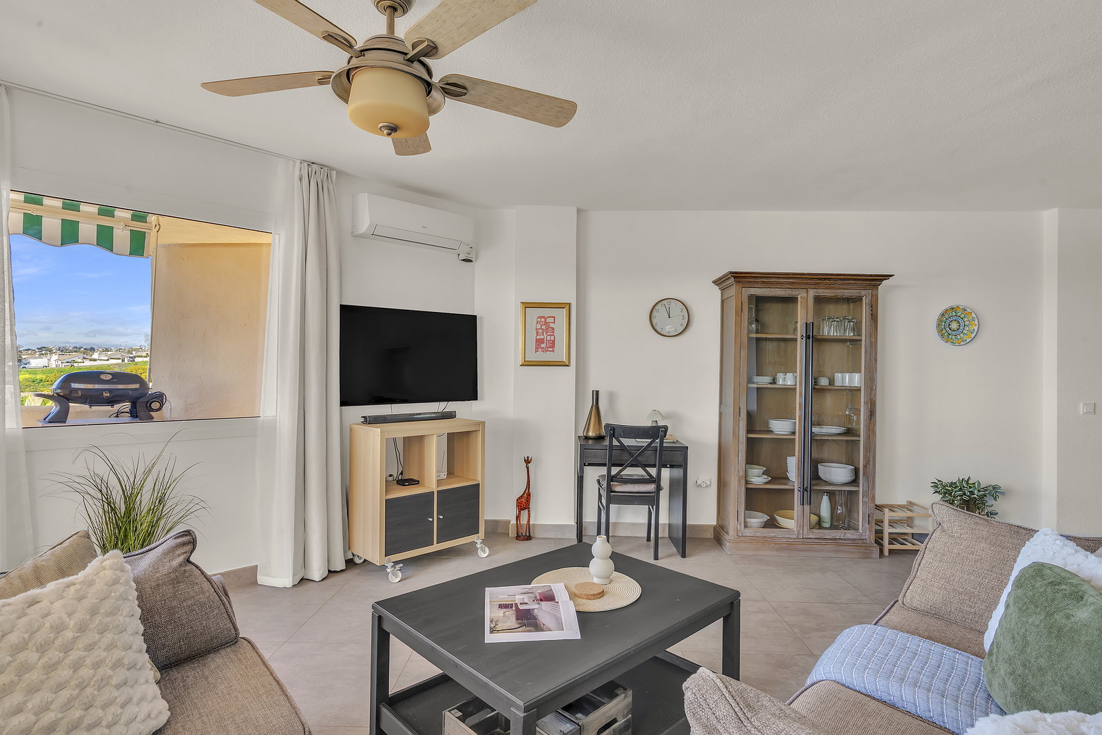 Het appartement beschikt over een lichte woonkamer met comfortabele zithoek, Netflix en internationale tv-zenders via Zapi TV. Grote ramen zorgen voor veel daglicht en een ontspannen vakantiesfeer.